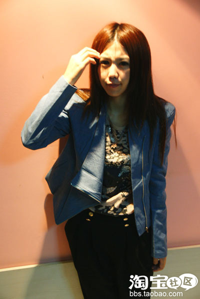 机车版的大翻领小外套,领子里还衬有一块蕾丝,帅气中还女人味的魅力.