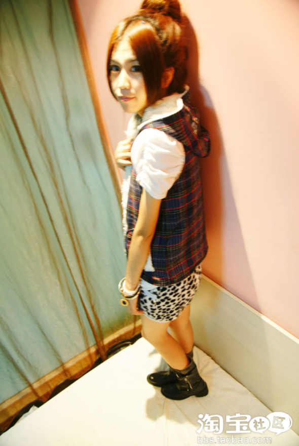 很甜美呢,设计的也很好,2面穿的,一面是毛毛,一面是格子,太爱了。