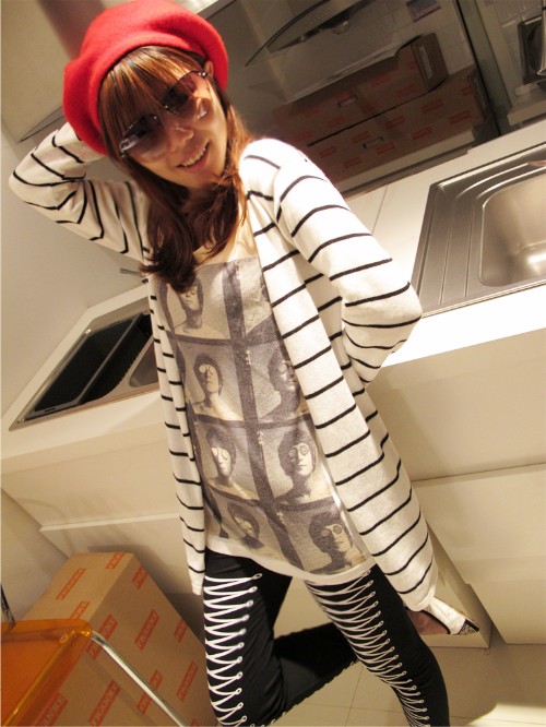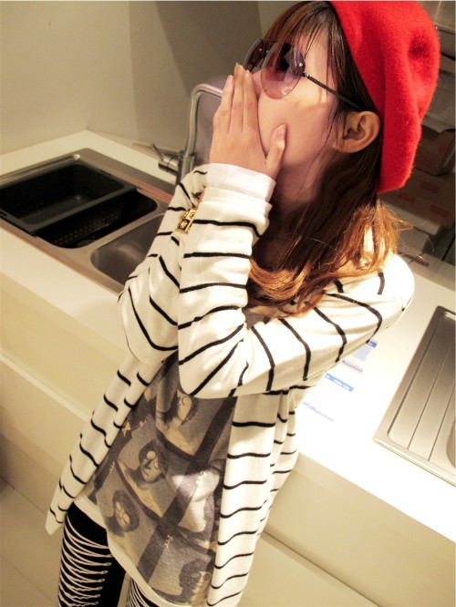 比较有韩国风 虽然是条纹的设计 但是一点都不会显胖反而是这种宽松的感觉 更给人亲切的感觉