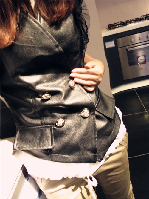 黑色蕾丝小飞轴金属扣皮夹克 +工装裤