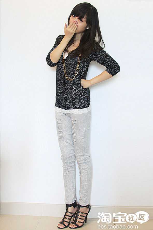 不过zizi没有用到豹纹的本色而是用的黑色来搭配再搭配“金”色饰品