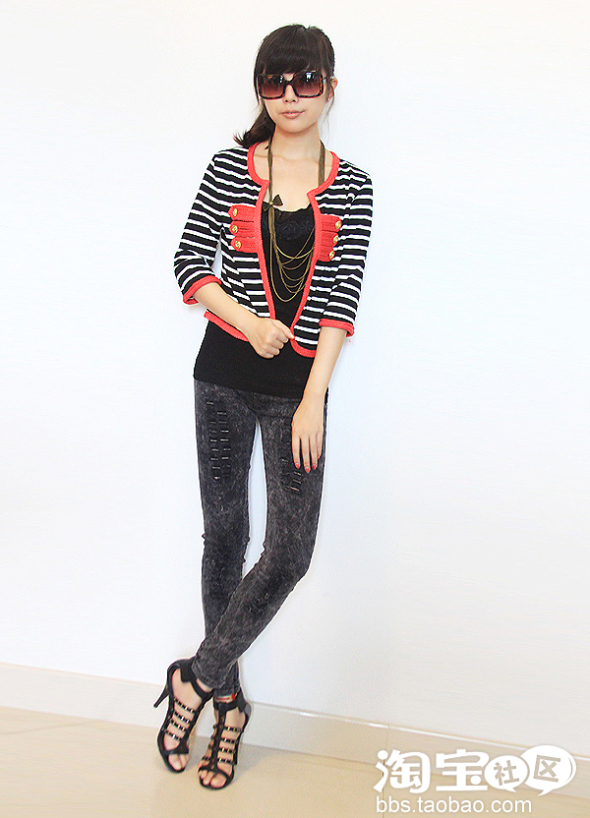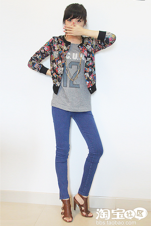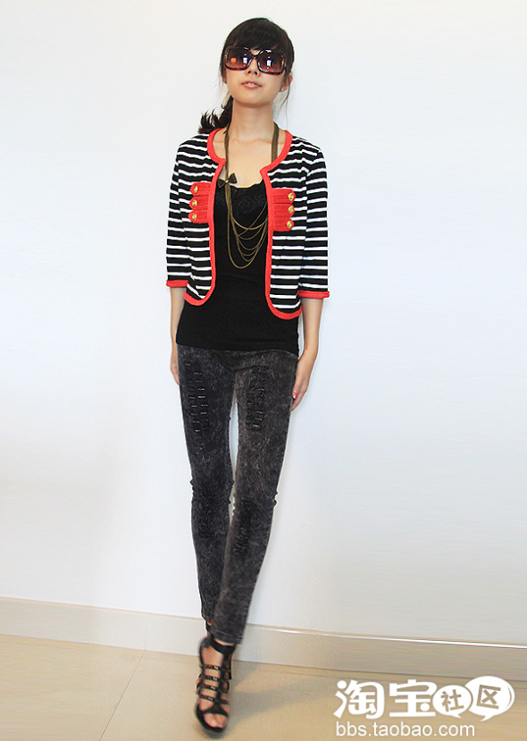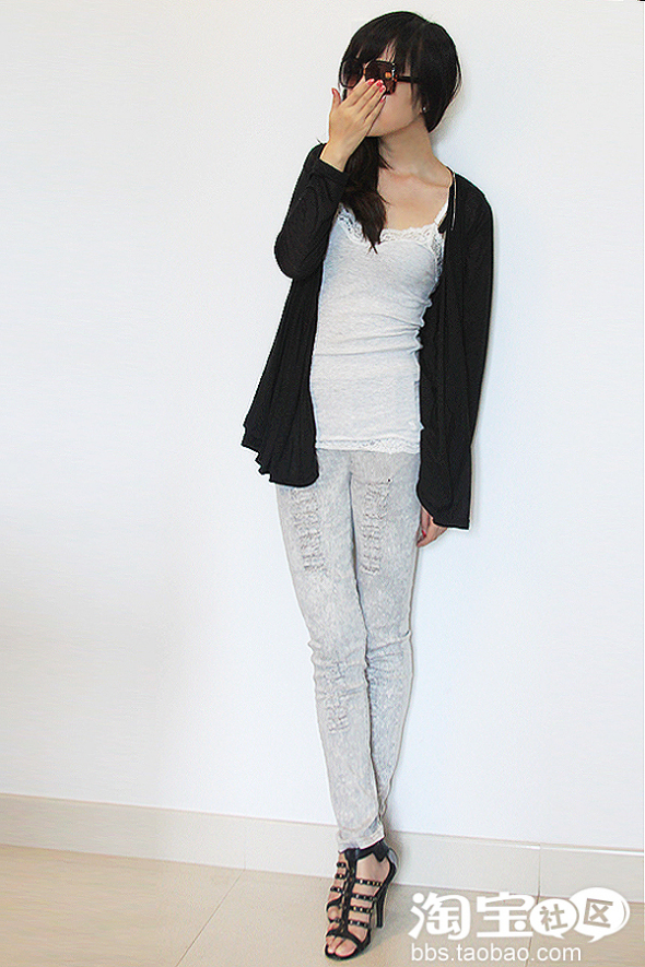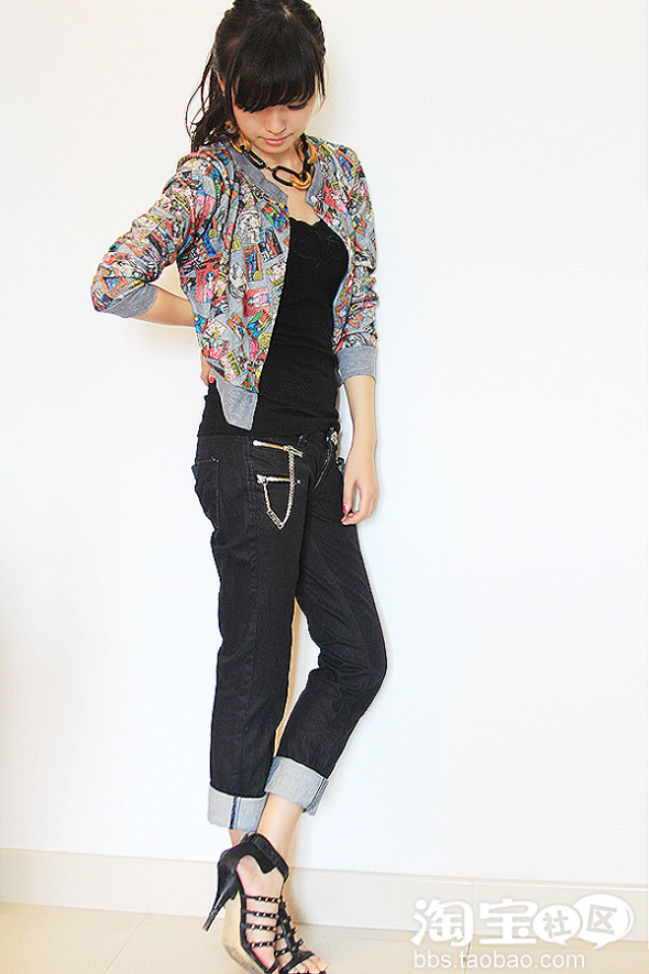 黑色的薄外套搭配的是洗白的九分铅笔裤,也是zizi喜欢的统一一套内搭