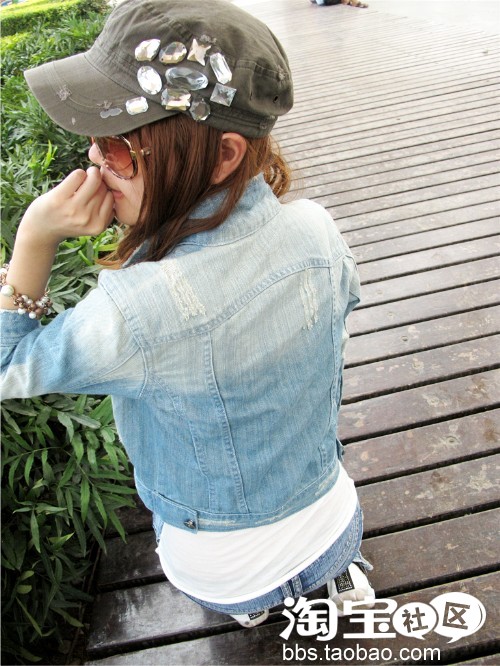 超COOL的牛仔外套耶,撞色的感觉有FEEL,渐变的,是个小短装的样子