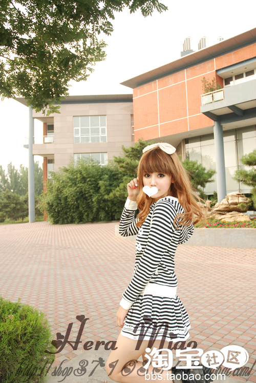 可爱的套装~个人很喜欢下面搭配的蛋糕裙~蓬蓬的皱褶会显得腿很细^^