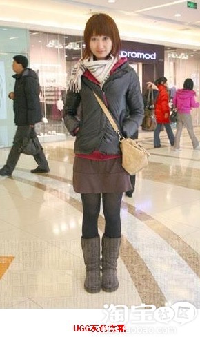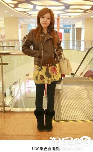 3、裙装、短裤也可以搭配雪地靴,想要打造甜美可爱造型的女生不妨参考一下。
