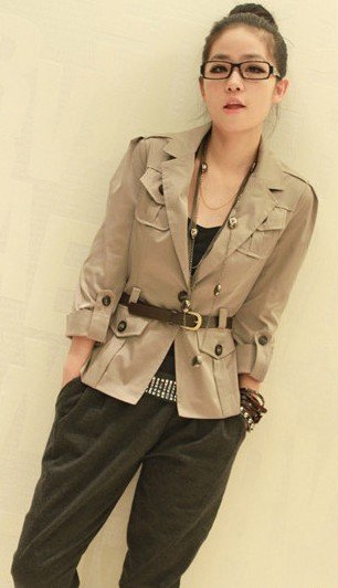 兼备OL职业气息的一款卡其色风衣。带上帽子的时候还有几分福尔摩斯的侦探气质,风衣是每年都将流行的外套之一,外形以茧形最为出众。在腰部系上一条腰带,很有华美的视觉。简约大方的风格,臃懒中也能体现出精致感,大V领,性感而优雅。