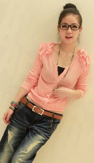 黑色经典内搭,粉色超级sweet,中间有一排扣子还可以打开穿,实用性很强,兼备大牌气质和公主气质的一款开衫!