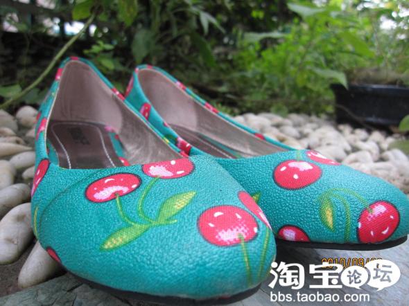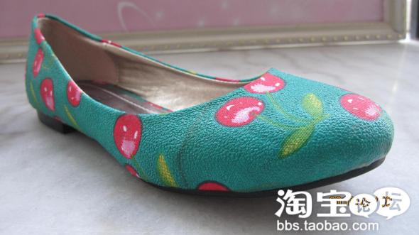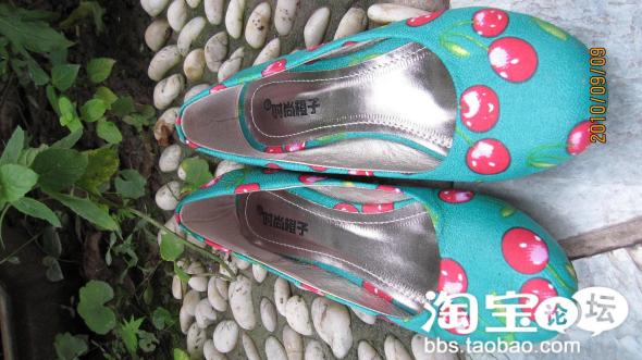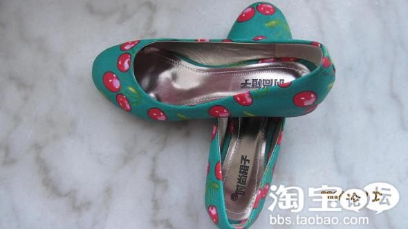 这双鞋子整体的感觉比较休闲,灰常鲜艳滴绿色配红红滴樱桃,颜色搭配很抢眼,让人眼前一亮的感觉。个人觉得这双鞋子比较适合逛街、郊游,可以配铅笔裤、短裤、短裙,挺百搭的说~由于偶才生完小盆友,偶滴漂亮衣服现在还穿不下,就配不了图了~~~有机会一定要秀一秀!!!