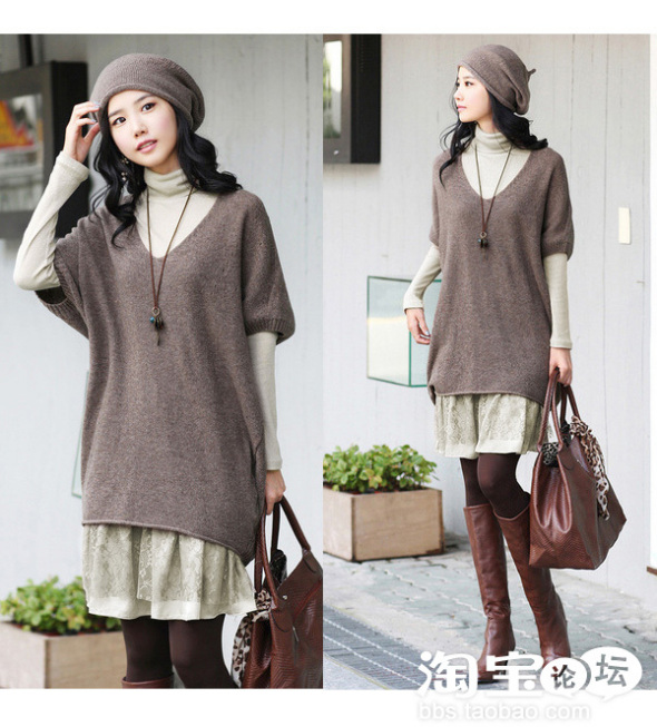 外面搭配一款宽松的中长款V领毛衣,简单随意又不失时尚个性!