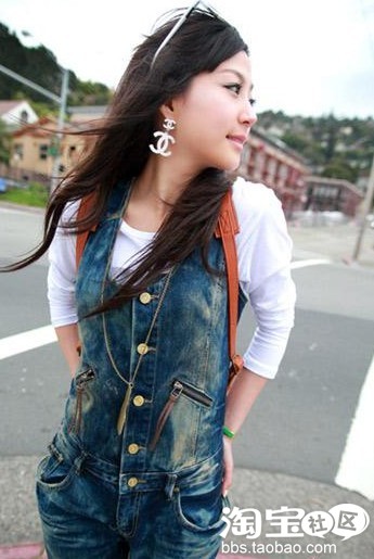 一直流行的复古背带牛仔裤造型,厌倦了甜美造型的你,与略带成熟的饰物MIX,打造属于自己的独特品位。
