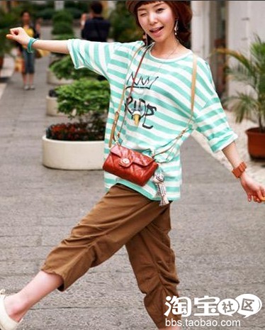 宽松的条纹衫,MIX宽松的卡其裤打造中性风。
