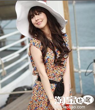 束腰碎花连衣裙,搭配浪漫的宽檐草帽,是完美的度假风。