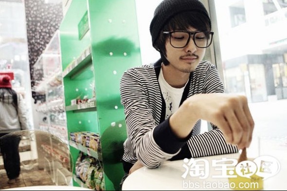 恩恩偶喜欢这张,感觉有点学生的味道,黑白条纹的开衫,大框眼镜 针织帽