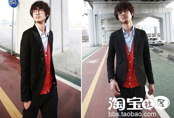 恩叼叼的眼神我喜欢,珊瑚红的开始外套一小西服,不错,加上一眼镜,