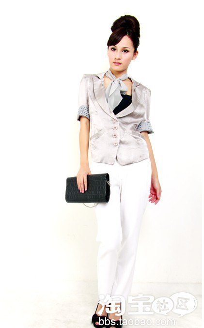 挺括的弹力棉材料,修身的造型打造丽人干练和柔美的一面,傲然行走、神情淡然,一成不染的皮鞋踏出急促的脚步,很忙。。。