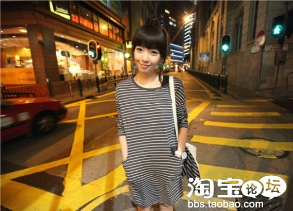 7、粗条纹长T,将条纹进行到底!呵呵....让条纹成为今秋的亮点,侧边的设计也很独特的哦!