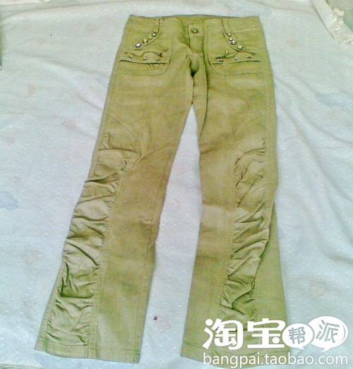 话不多说了,步入正题。一条染色了的裤子,被污染的部位正好在屁股后面的部位很明显,而且款式也过时了,所以今天我就牺牲它了 哈哈。裤子本身是那种银灰色,料子里面夹有银丝的那种感觉,灯光不太好 又是拿手机拍的 所以不是很清楚,大家将就看哈 嘿嘿。剪下一条裤腿用,裤腿上面的褶皱比较喜欢 正好做包包嘿嘿。剩余的部位咱留着干点别的。