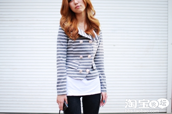 蓝白条纹可谓是海军风的代表,内收下摆绝对的与众不同,蝙蝠袖带来惊人显瘦效果哦