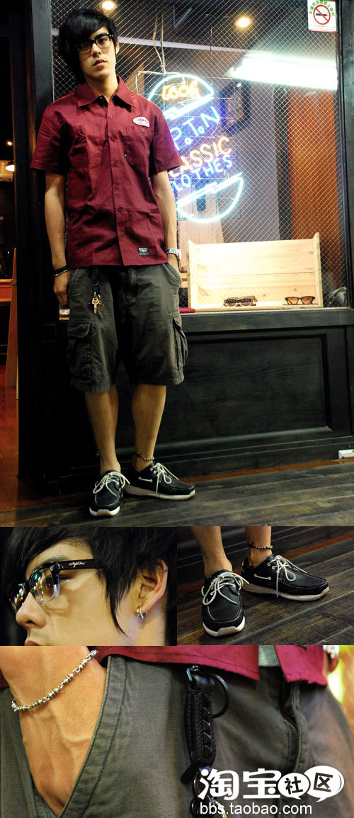 时尚的T恤加上混搭的短裤,以及镶边框架潮男镜,让人一看就觉得有点秋意的清凉