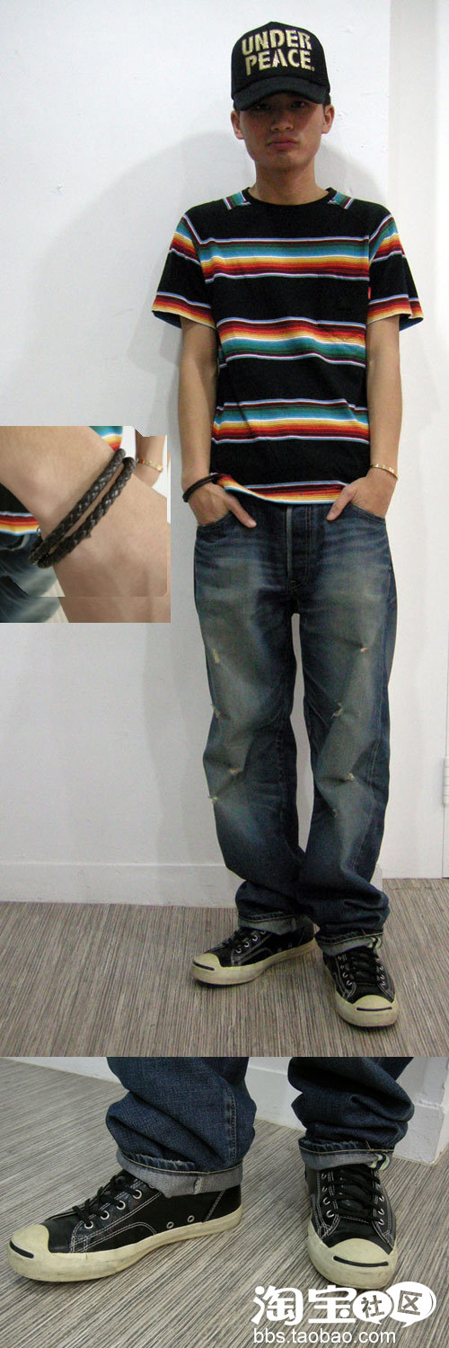 单色的潮流 T恤加上一条复古的牛仔,这样的英伦风一下子得到最好的体现 嘎嘎 回去也来淘一件!
