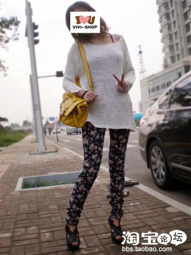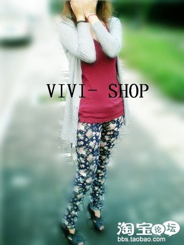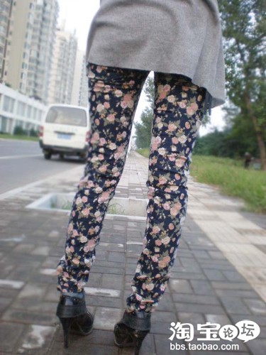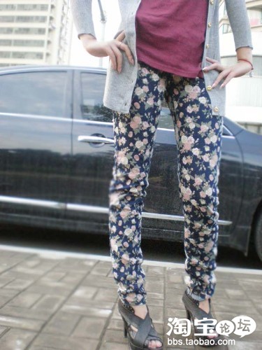 4.复古怀旧深蓝花朵做旧女款修身小裤脚牛仔铅笔裤长裤