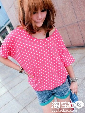 2. 俏丽or性感or可爱の露肩波点长款TEE