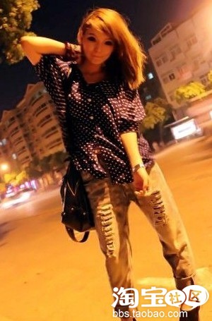 3.搭配一条做旧的牛仔裤,(也可以参考我这种随性风格).