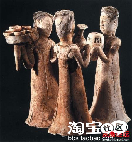 东晋灰陶彩绘女俑,1955年南京砂石山石子风出土,高34.6公分,纪元4世纪,南京博物馆藏~~有没有觉得这个帽子很特别? 对了,就是这样的,东晋护士状头巾。