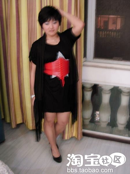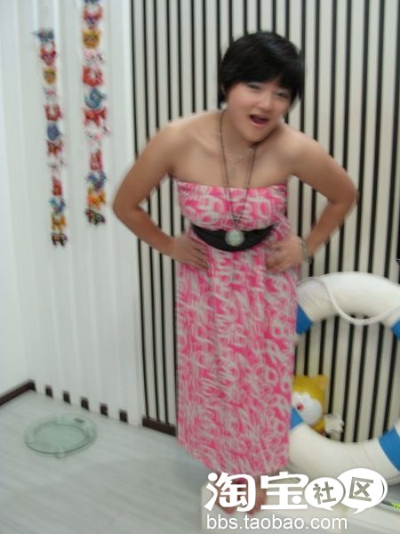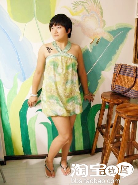 NO.2连衣露肩T+,加一腰带,比较宽,感觉有腰了,没肚子,脚上穿平底或者人字,我的那双没上