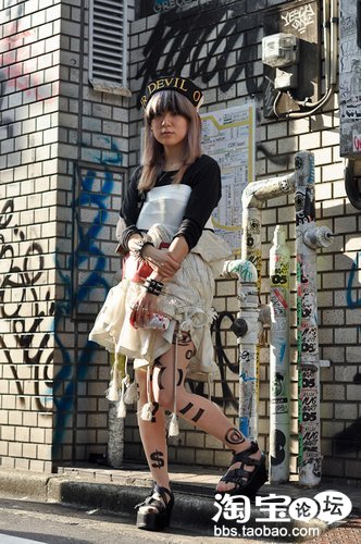 乱搞一气的短裙搭配无厘头符号长袜,完全在全身找不到重点。