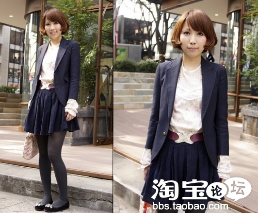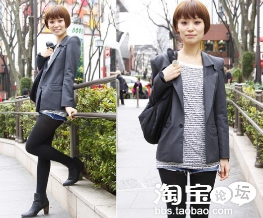 这种配搭能成为初秋西服外套的主流搭配主要在于它的简单而实用,一条与西装颜色色调相反的连身裙,再加上一条与任何一个单品相近色的打底裤或丝袜就能搞定了, 而且上班或逛街都适用。