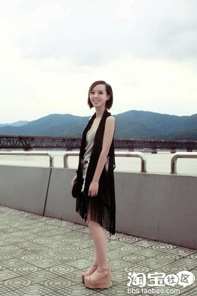 流苏马甲,其实我更喜欢把两边流苏系起来穿,忘了拍照片了。亮点其实还是这很有爱的木屐。