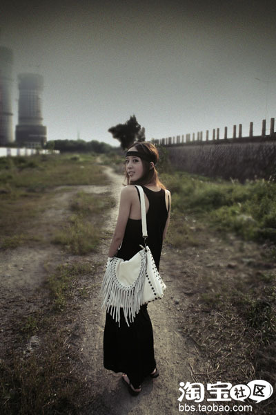 这一身配一只流苏铆钉大包包,很赞啦