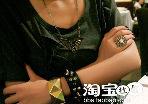朋克手镯很重口味吧?用来戳坏人最好不过了呢。蝙蝠项链,我的新宠。
