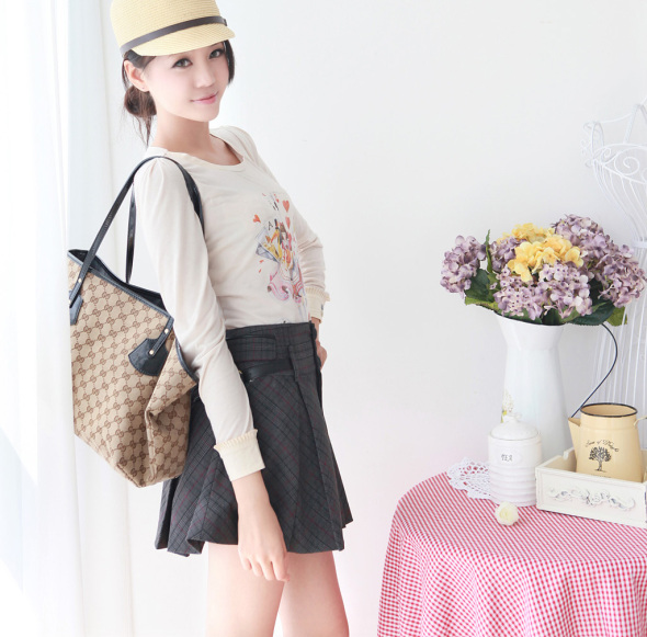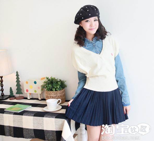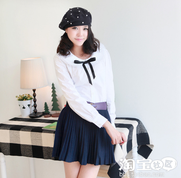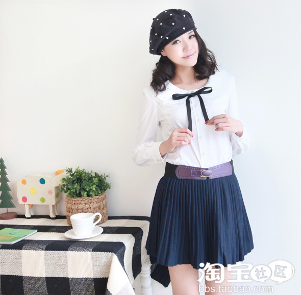 压褶的裙型,含蓄而不失可爱,有学生的青涩气质,也有女性很深的柔美