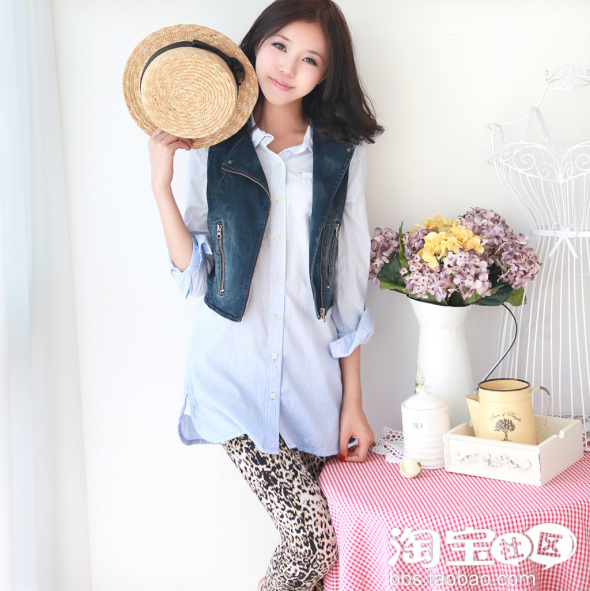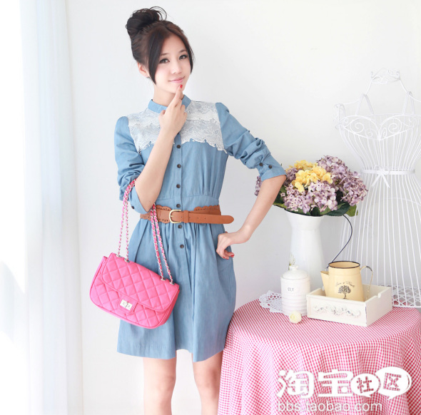 牛仔衬衫的洒脱,却可以穿出这样的甜美可人