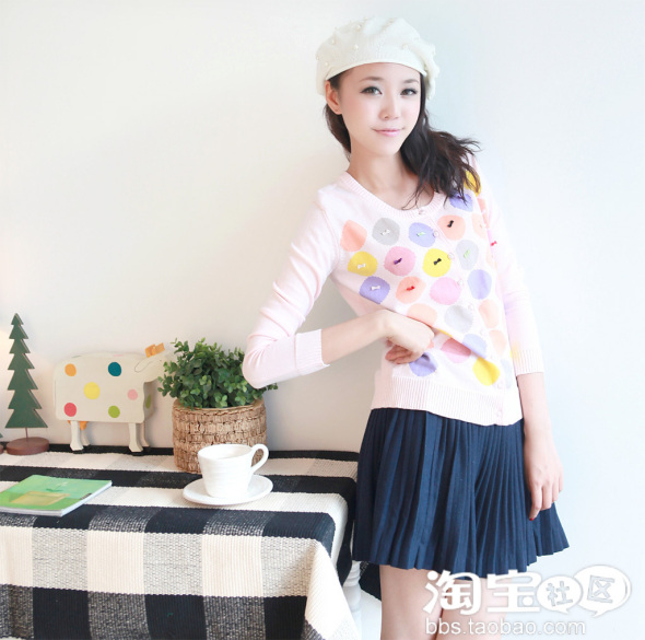 大爱的不行的针织衫 白色的简约 大波点的快乐