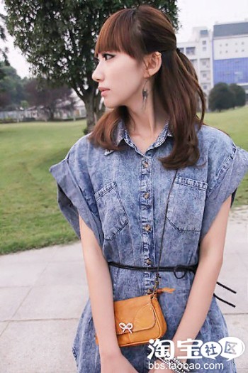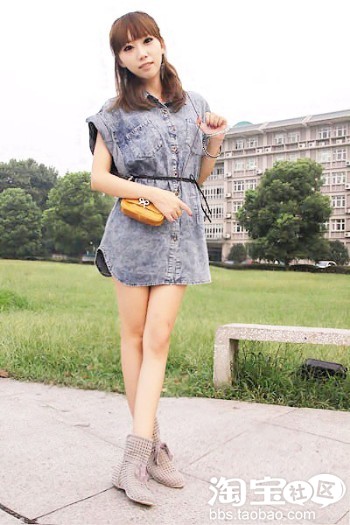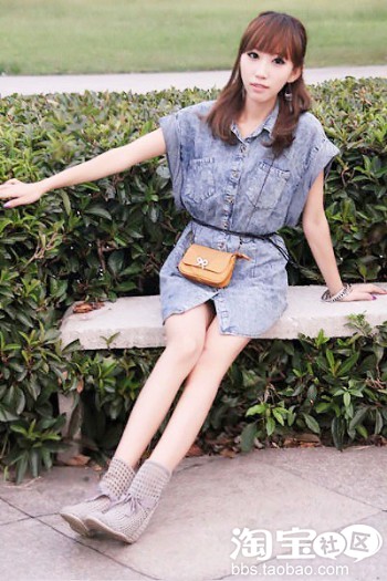 个性牛仔衣+网面休闲鞋+全牛皮蝴蝶结小包