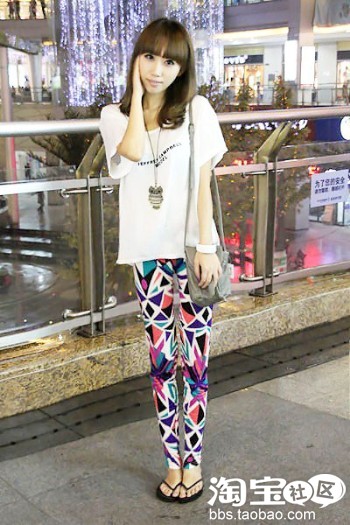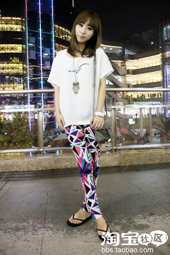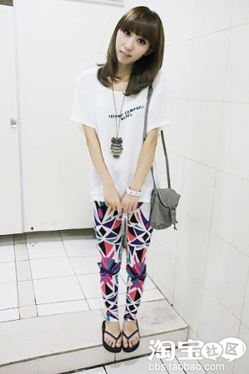 几何拼色打底裤已经很抢眼了 那上身就需简单 再简单就ok了