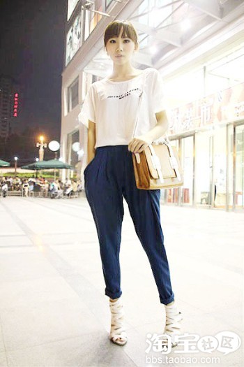 简约字母tee+哈伦裤+两色公文包+罗马鞋