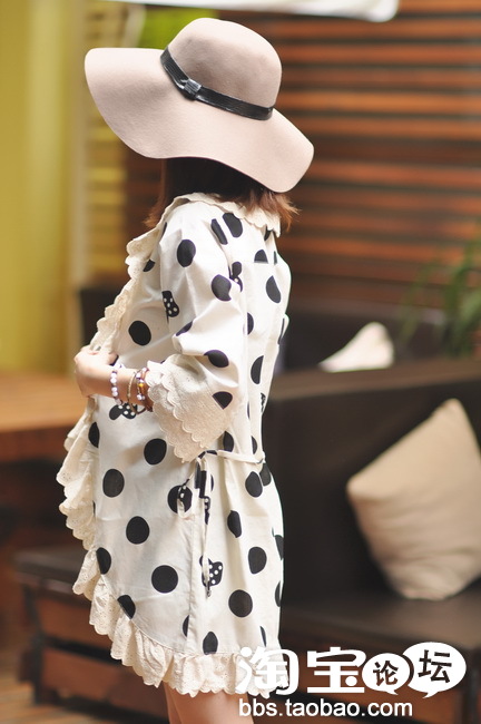 复古风~~~~大毡帽和圆点木耳边长衫~~~~~整体都是褐色系的,灰常的复古