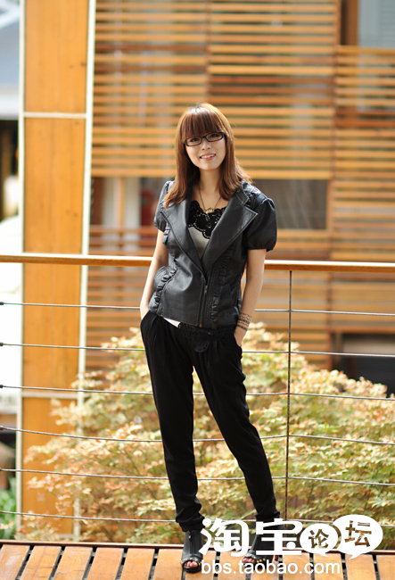 泡泡短袖的皮衣,黑色是推荐的,很酷哦