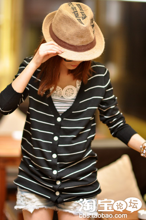 喜欢把针织衫穿出别具一格的酷感,条纹的总是百搭~~~~