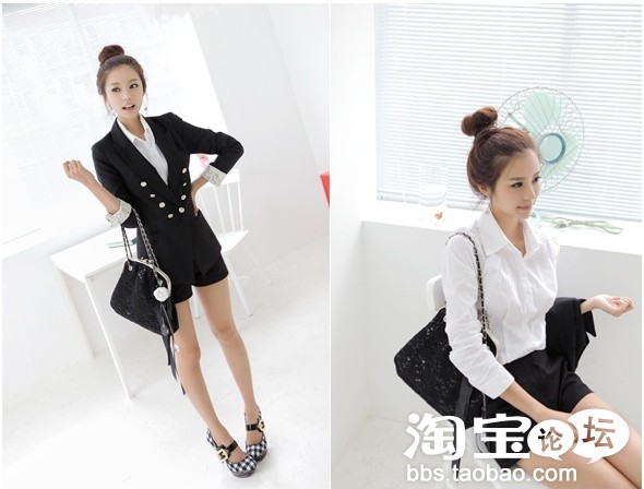 2.下身着象牙白长裤,上身穿淡紫色西装,配以纯白色衬衣,不失为一种成功的配色,可充分显示自我个性;