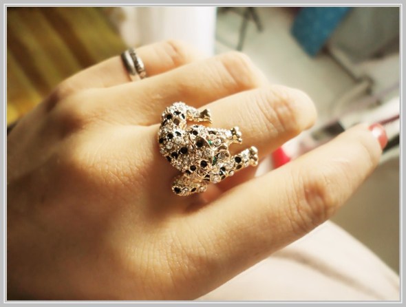 最后一款是 小豹子戒指 这款我选择戴在了中指 这个显得豹子霸气又贵气~上面水钻的颜色搭配也很好看 呵呵 两款戒指都爱不释手