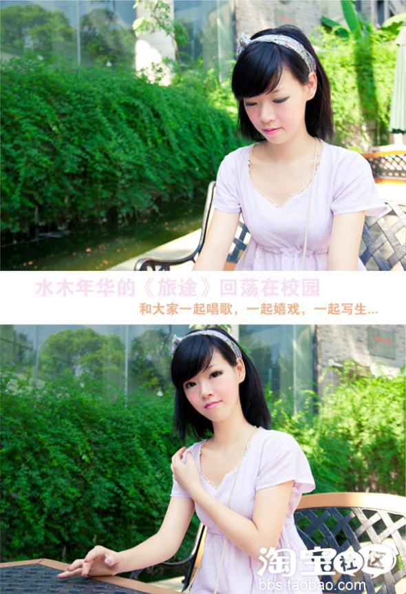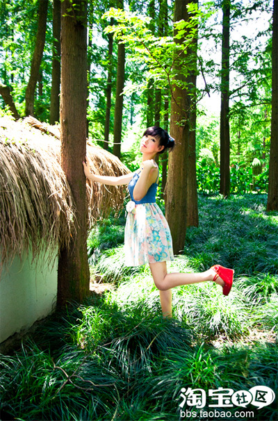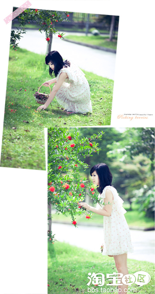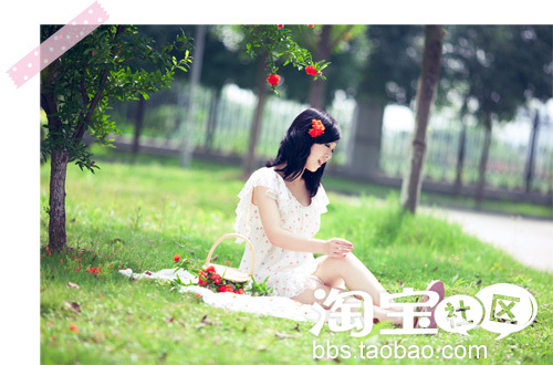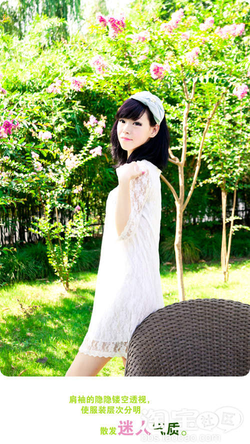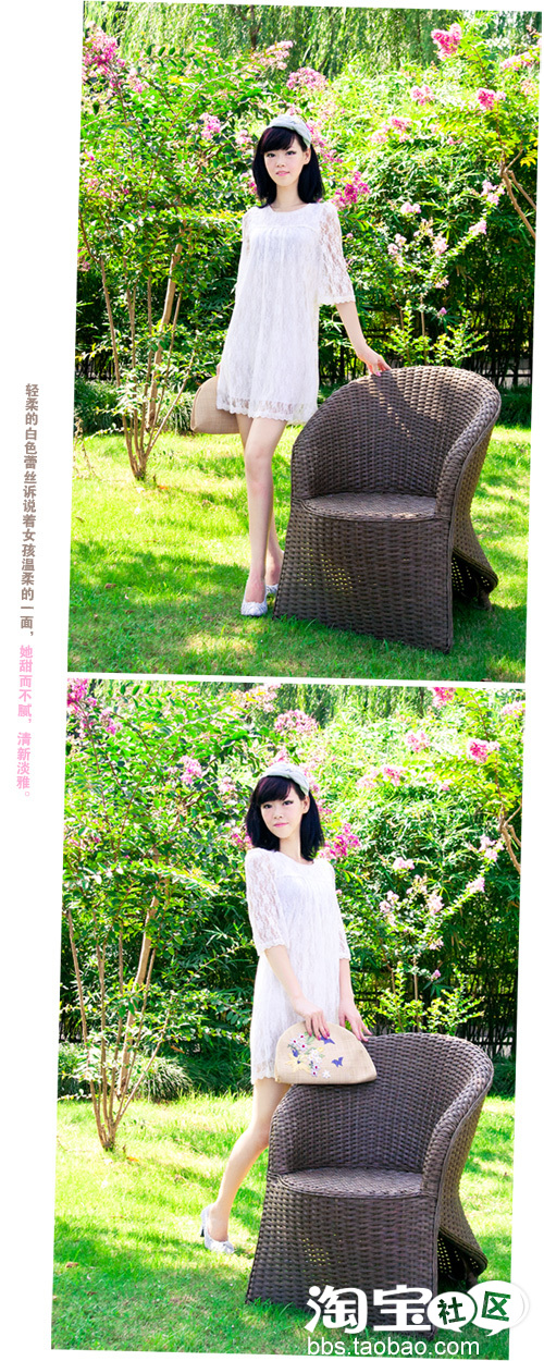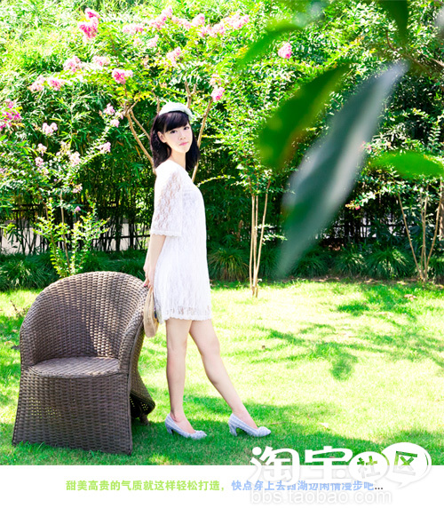 穿一身白色蕾丝连衣裙,更是与自然亲密接触。