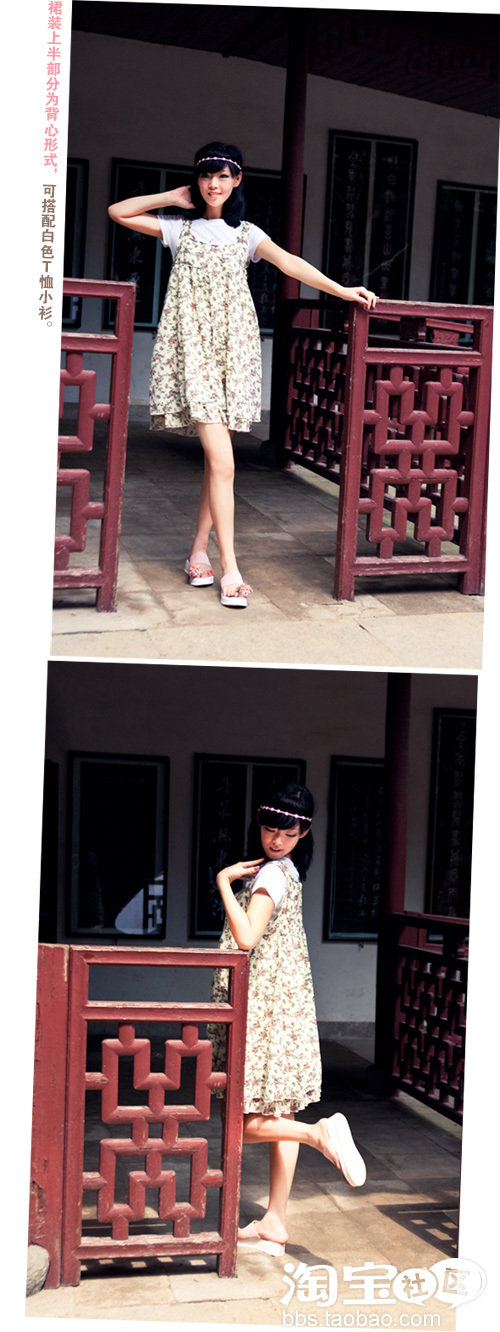 【贰】:娃娃装田园碎花背心高腰连衣裙