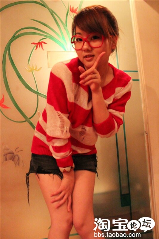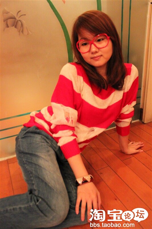 这款红白相间的线衣,很有个性噢!也有破洞设计