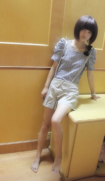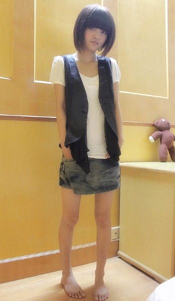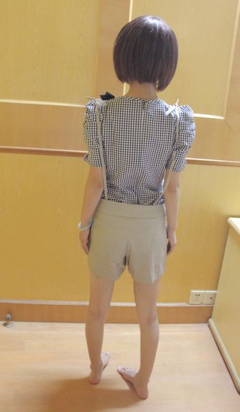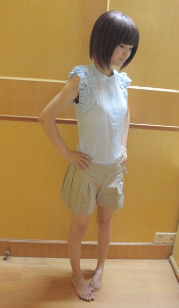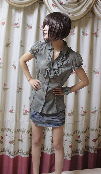简单的T恤加雪纺马甲,拉伸视觉效果,