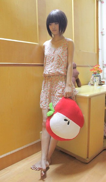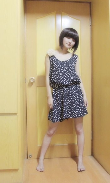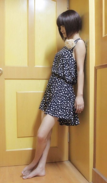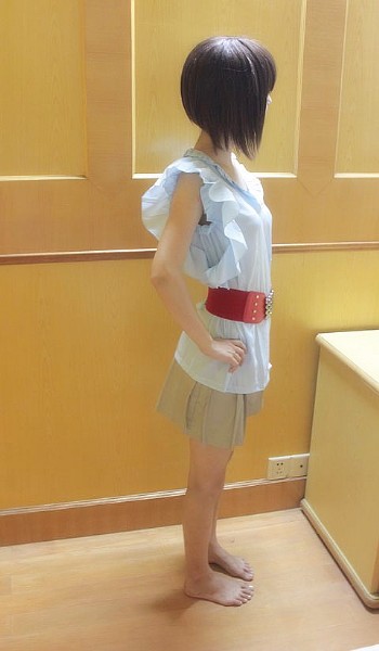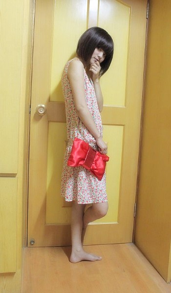 收腰背心裙加上肩头花朵装饰抬高视线位置